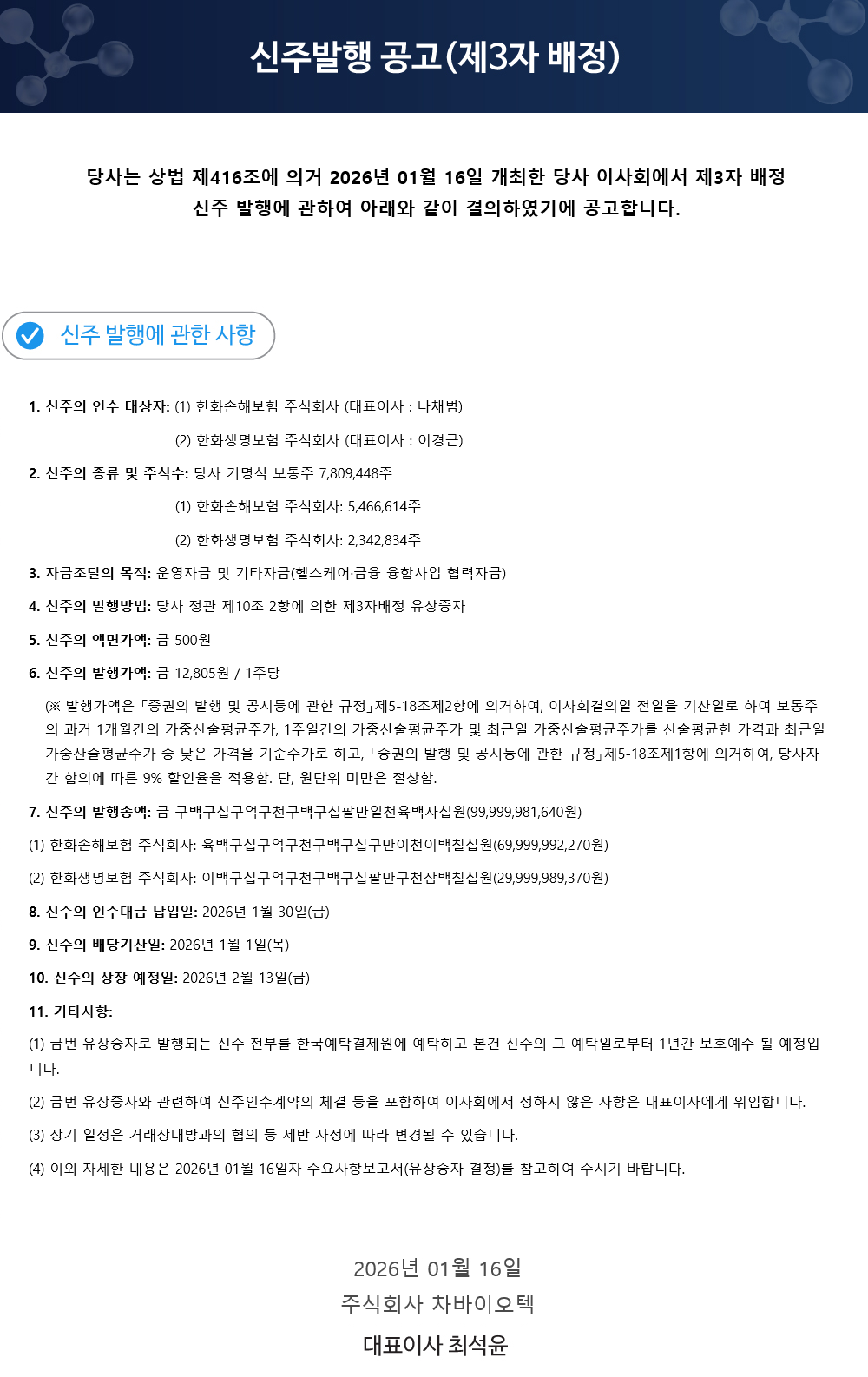 차바이오텍의 안내와 공고를 확인하기시 바랍니다.