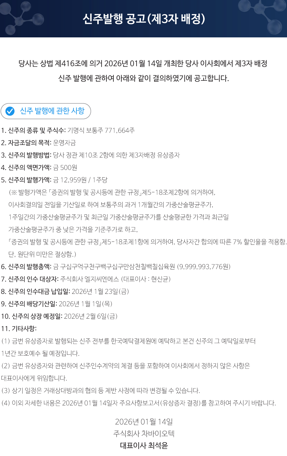차바이오텍의 안내와 공고를 확인하기시 바랍니다.