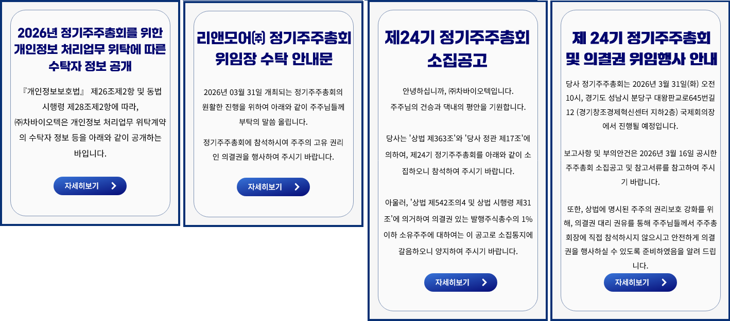 차바이오텍의 다양한 공고문을 확인하실 수 있습니다.